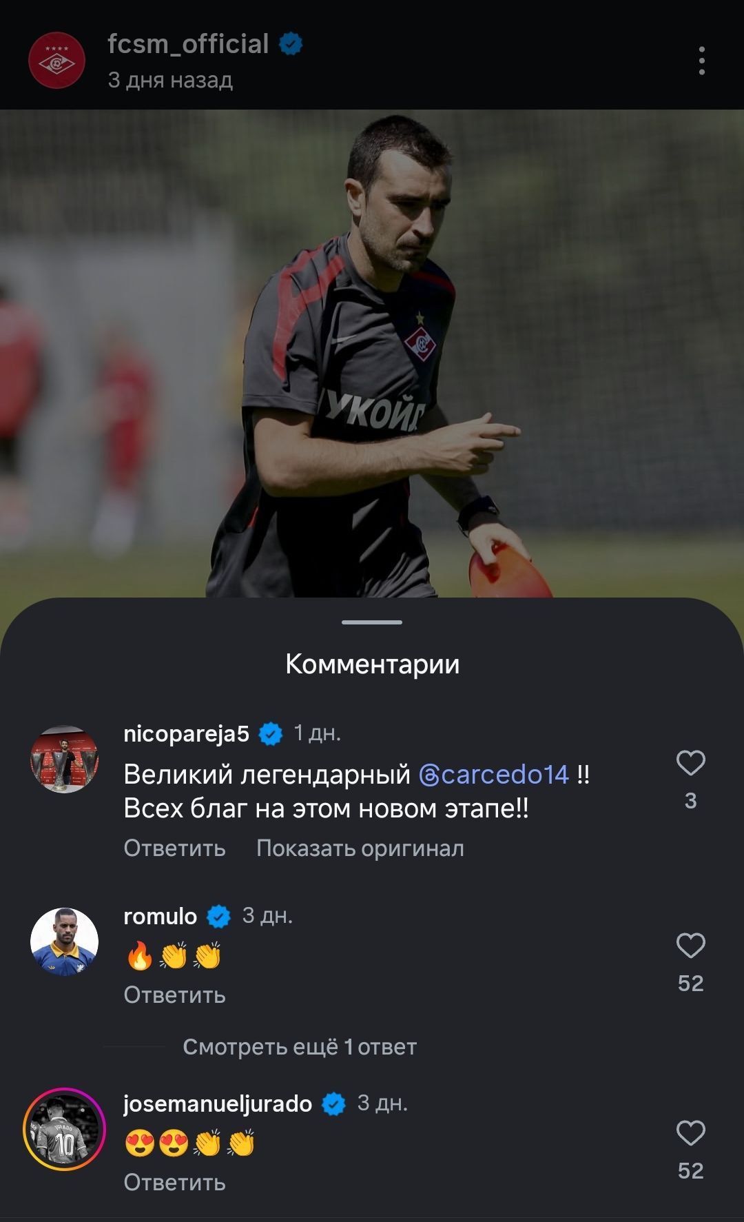 Экс-спартаковцы Пареха, Хурадо и Ромуло отреагировали в соцсетях на назначение Карседо